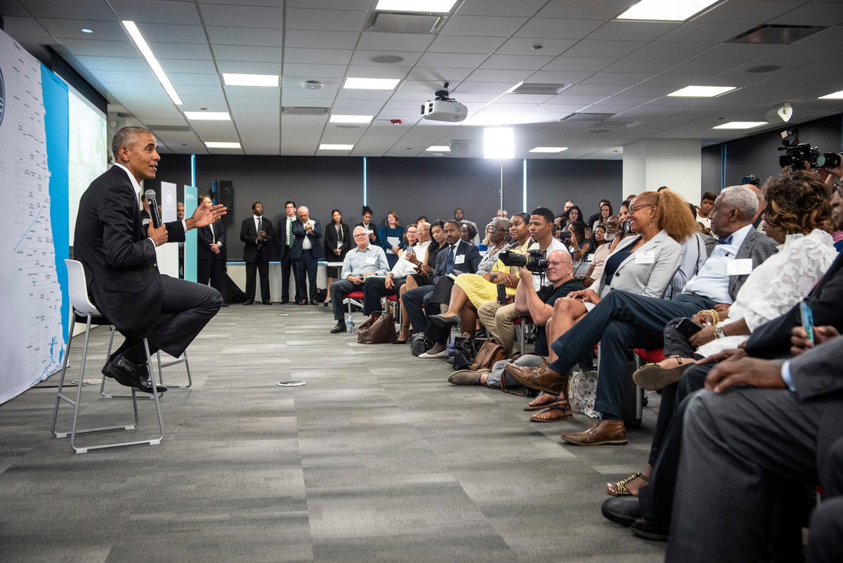 “This is where I came to the belief that when you involve people and engage people and empower people that good things happen.”—@BarackObama during a surprise visit to thank community members for their support and input in the building process for the Obama Presidential Center.
